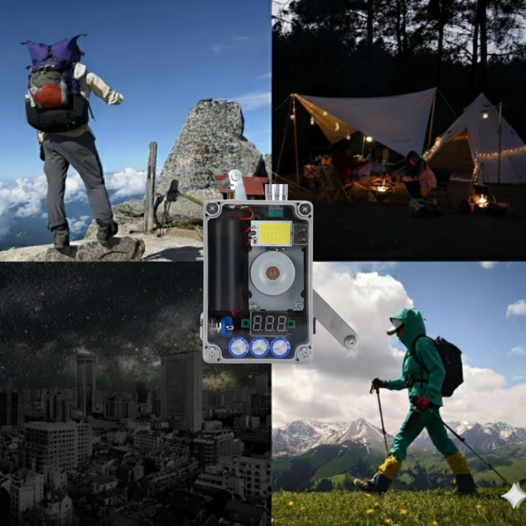 Yes! It generates power whenever you need it—during a blackout, on a mountain hike, or any situation where energy is needed. You can charge your phone, start a fire with the spark igniter, or use the adjustable flashlight .