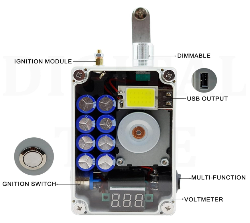 GENERATOR WITH USB, LIGHT & FIRE STARTER